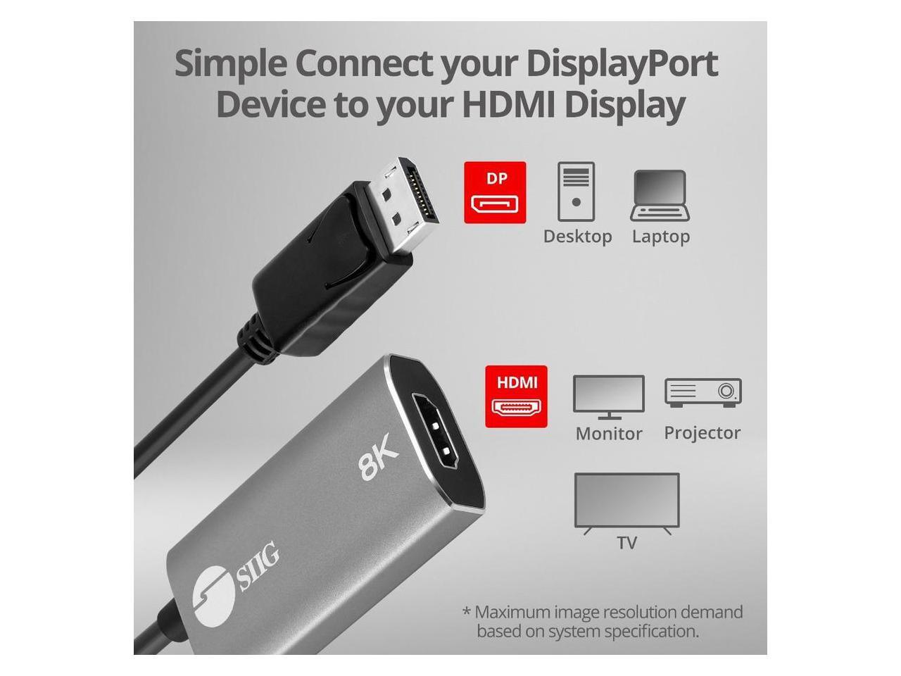 SIIG DisplayPort 1.4 to HDMI Adapter 8K 60Hz Male to Female CB-DP2611-S1