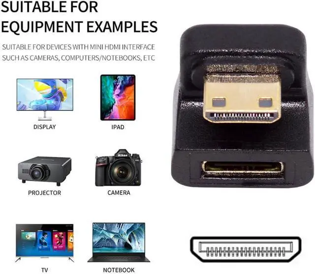 Both connector are Mini HDMI port. Converts an Mini HDMI Male Plug to a Mini HDMI Female Jack or Vice Versa.