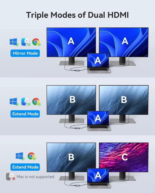 More Display Modes with ABLEWE USB to HDMI Adapter