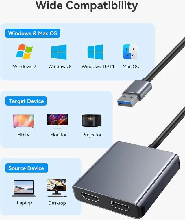 - 1 ×USB to Dual HDMI Adapter