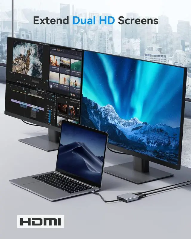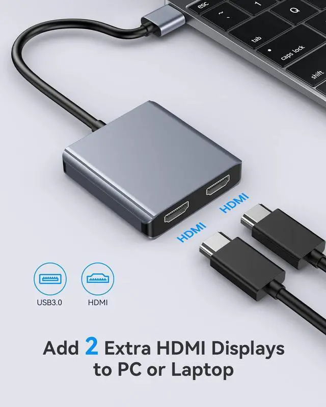 Compared to the heavy and space-consuming docking station, this small usb to dual hdmi adapter can also be connected to two monitors very quickly. Achieve multi-screen work while keeping the desktop clean and tidy.