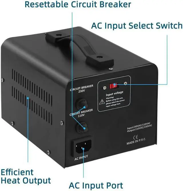 1000 Watts Medium Duty Step Up/Down Voltage Transformer Converter. Step Up Voltage from 110-120 Volts to 220-240 Volts. Step Down Voltage from 220-240 Volts to 110-120 Volts.