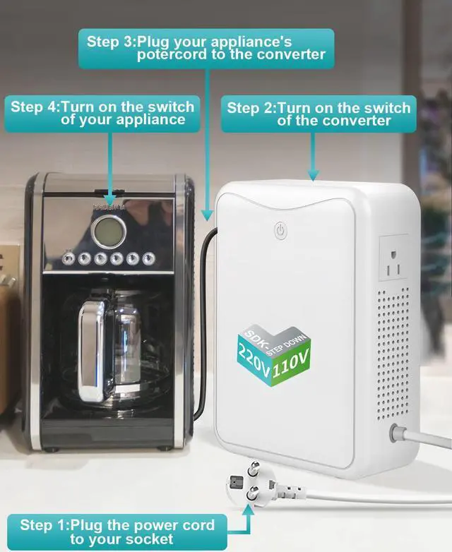 Safe for appliances: Our Voltage Transformer is recommended for appliances not exceeding 1600W to prevent damage to the transformer and the appliances used. It' s perfect for coffee machines, hair dryers, kettles, rice cookers, juicers, and other appliances.