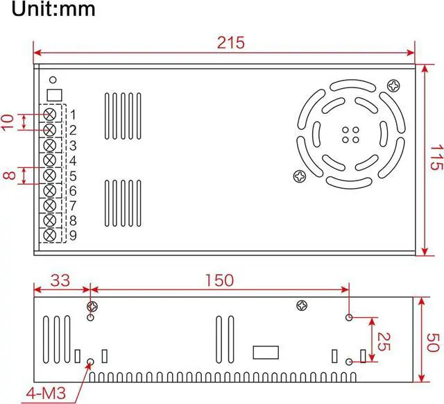 600W DC Switching power supplyUniversal AC input 110VAC/220VAC selected by switch.