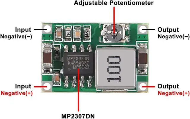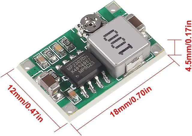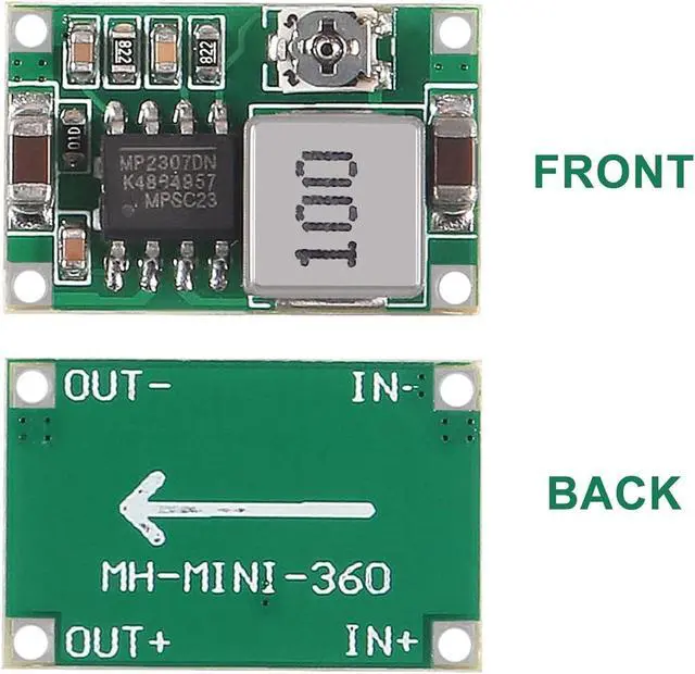 Mini 360 buck Switching frequency: 340 KHz switching frequency, less than 30mV ripple (no load), MP2307 IC