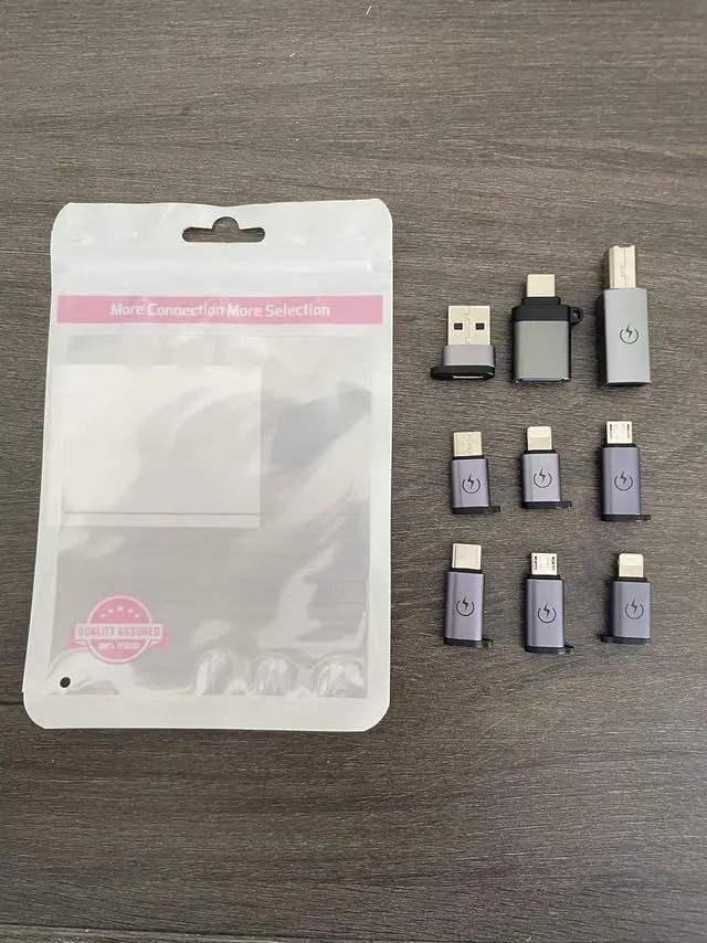 Package includes: 9 USB C/i-p to Micro adapters USB C/Micro toi-p adapters Micro/Lighting to USB C adapters USB C to USB adapters USB to USB C adapters USB C to USB B adapters.