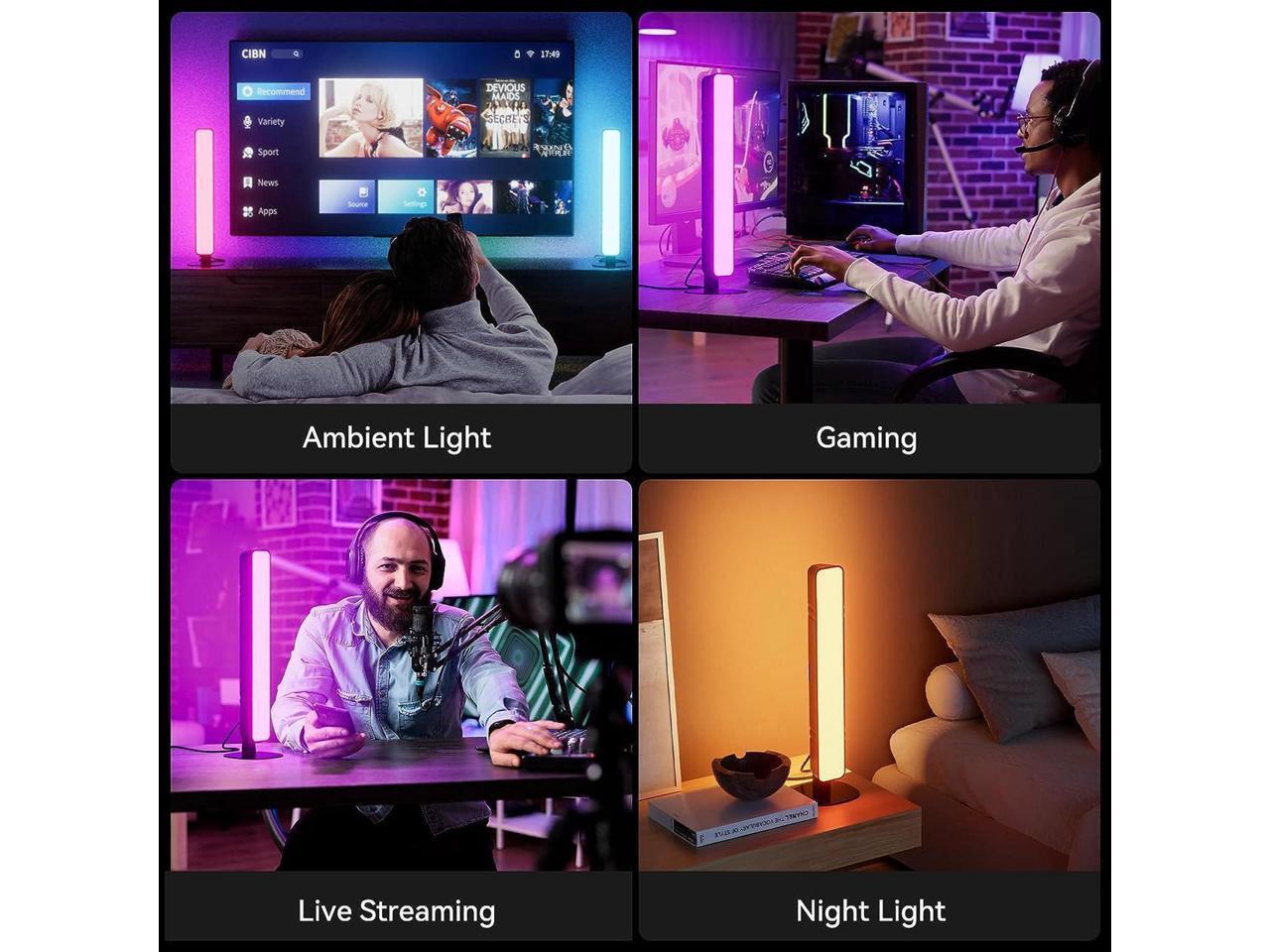 - Dynamic Audio Sync: The LED light bars are built into a music-tracking sensor. You can simply click the Smooth mode with the remote to reach your most desired dynamic expression for your chosen music. Perfect for gaming, watching movies, playing music, parties, and more.