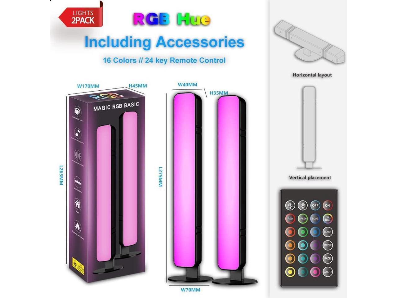 Smart LED Light Bar, RGB Smart LED Lamp with Multiple Lighting Effects, LED TV Backlight, Mood Light, Gaming Lights, Ambient Lighting, Smart Flow Light Bar for PC, TV, Room (with 24 keys Remote)