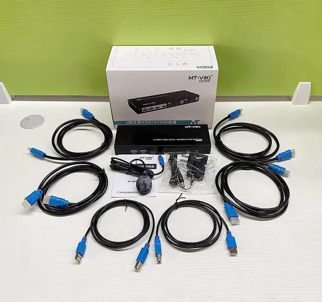 Dual Monitor KVM Switch helps you use 1 set of keyboard and mouse to control 2 computers share 2 monitor, you can switch anytime.