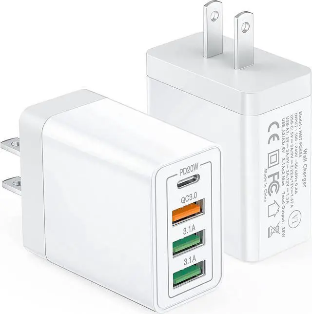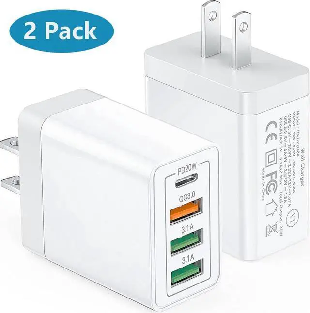 High-Speed Charging: With QC+PD 3.0 port, offers fast and efficient charging up to 3X faster than a 5W charger. Charge your i-P-h-one 13 up to 50% capacity in just 30 minutes with the original cable. Cable not included, only 2 Chargers.