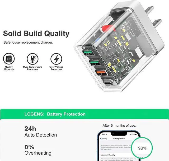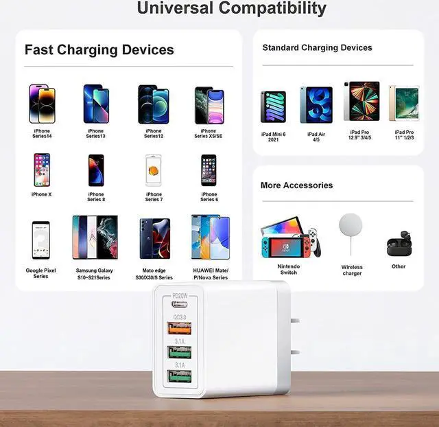 Universal Compatation: Designed for i-P-h-o-n-e 14/13/12/11 Pro/12 Pro Max/8 and later. The USB charging adapter is compatible with IOS Android smartphone, MP3 / MP4 players, PC tablet, and other digital devices compatible.
