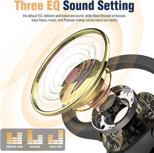 3 EQ sound built-in - Signature, the default EQ, delivers well-balanced sound, while Bass mode enhances bass-heavy music, and Podcast makes voices stand out clearly, quickly press the either earbud 4 times to switch to a different mode