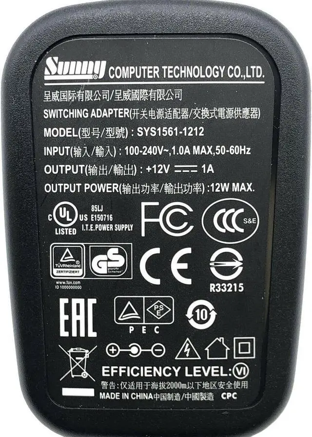 Genuine Sun-ny SYS1561-1212 AC Adapter 12V 1A 12W Switching Power Adapter