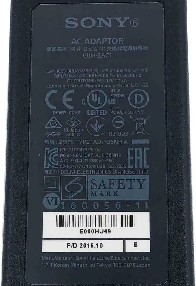 Genuine So-ny AC Power Supply Adapter SO-NY CUH-ZAC1 12V 3A 36W CHARGER w/PC