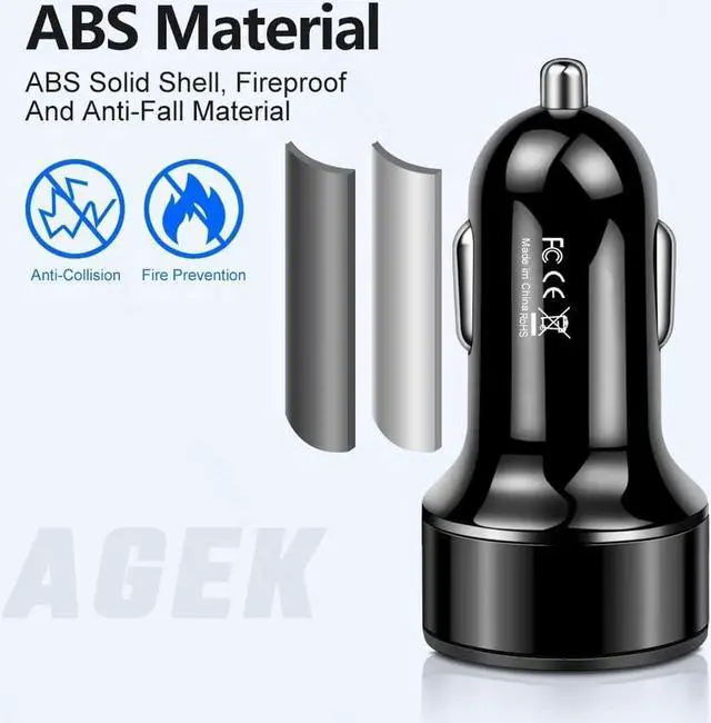 Wide Compatibility: AGEK car phone charger compatible with iPhone 15 Pro Max 15 Pro 15 Plus 15 iPhone 14 Pro Max 14 Pro 14 Plus 14 13 13 Mini 13 Pro 13 Pro Max 12 12 Mini 12 Pro 12 Pro Max SE 11 Pro Max XR XS X 8 Plus 7/6/5; for Galaxy S23+ S23 Ultra S23 S22/S21 Ultra Plus/S20/S10/S9 Note 20/20 Ultra/10 Lite/10/9; LG Stylo 6 5 4; Pixel 7 Pro 6A 6 6 Pro 5a Motorola Oneplus phones tablets car recorders sport watches car cameras and more USB powered devices.