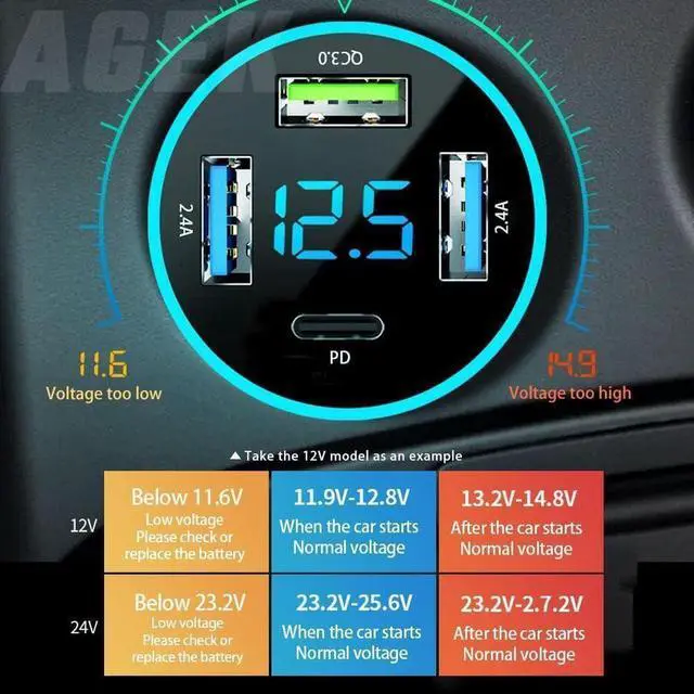LED Voltage Display: Cigarette lighter usb charger with LED digital voltmeter which can monitor and display the voltage of the vehicle battery in real time so as to master the health of the vehicle's electrical system.