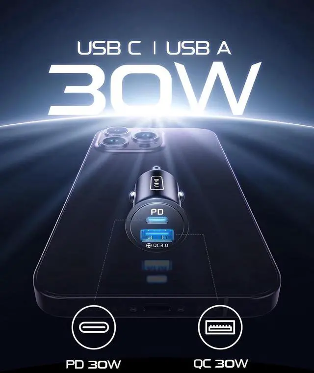 ? Powerful Charging for iPads With a high output up to 30W for the PD USB-C port INIU PD+QC car charger can even power a iPad Pro at full speed which no other car chargers can do.? Double the Fast Charge Unlike most car chargers with same 2 USB ports only it features both PD USB C and QC USB ports to let you fast fuel not only all the standard USB devices but all the new USB-C iPhone & Androids devices together!? Ultra-Compact Features a tiny thumb size 58% smaller than its competitors and less than 0.5 oz meaning it can sit more comfortably and snugly into the dash or cigarette lighter without worry of it coming loose on a bumpy road.