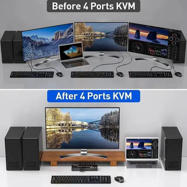 USB 3.0 HDMI KVM Switch 4 in 1 outThis USB 3.0 KVM switch allows to control 4 computers with only 1 set of monitor mouse and keyboard. Making easily switch between 4 computers on 1 monitor and share 4 USB 3.0 devices.