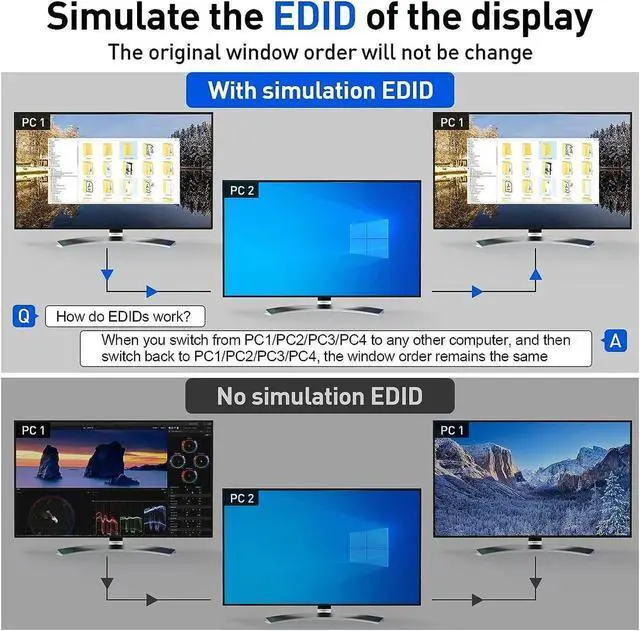USB 3.0 KVM Switch HDMI 4 Port Support 4K@60Hz 2K@120Hz RGB 4:4:4 Simulation EDID, HDMI USB Switch 4 in 1 Out and 4 USB 3.0 Port for Keyboard Mouse Printer,with Controller,USB3.0 Cables and HDMI Cable