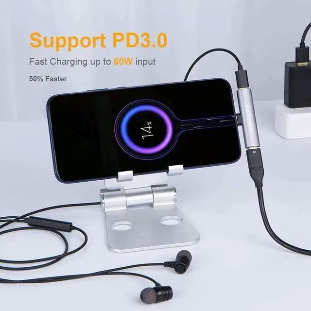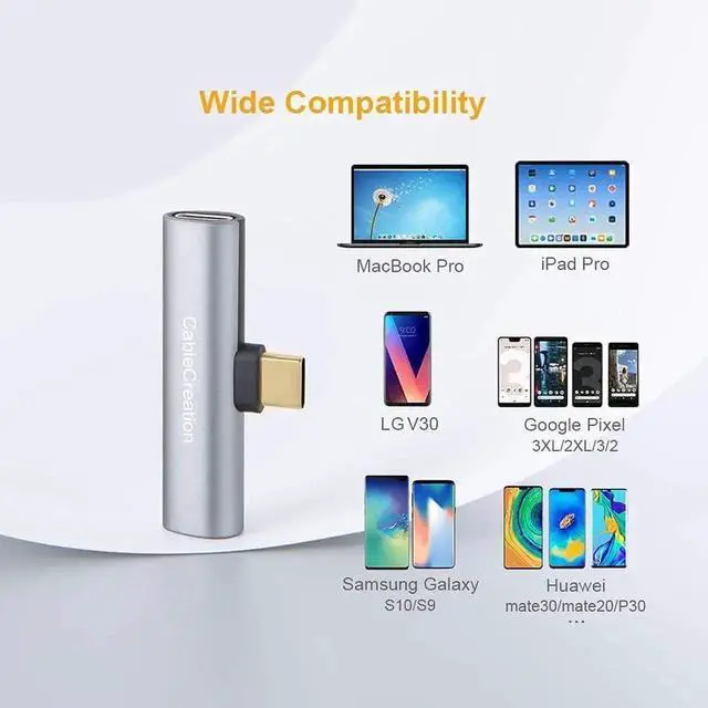 ?? Dual FunctionCableCreation USB-C audio and charging adapter allows you to connect a Type-C headset and PD adapter simultaneously. Don't worry about the phone will be out of power when playing games, enjoying fantastic music or having a long telephone conversation