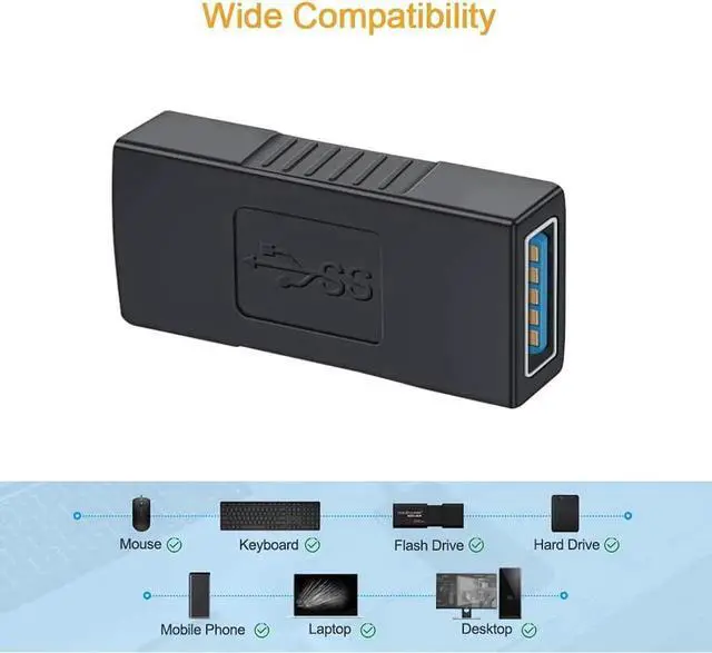 ? USB 3.0 Standard A Female to USB 3.0 Female Connector: provide a USB standard A female port to read your USB flash drive with your existing Cable in narrow place