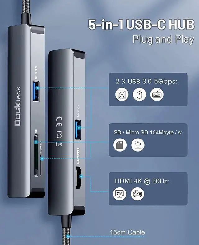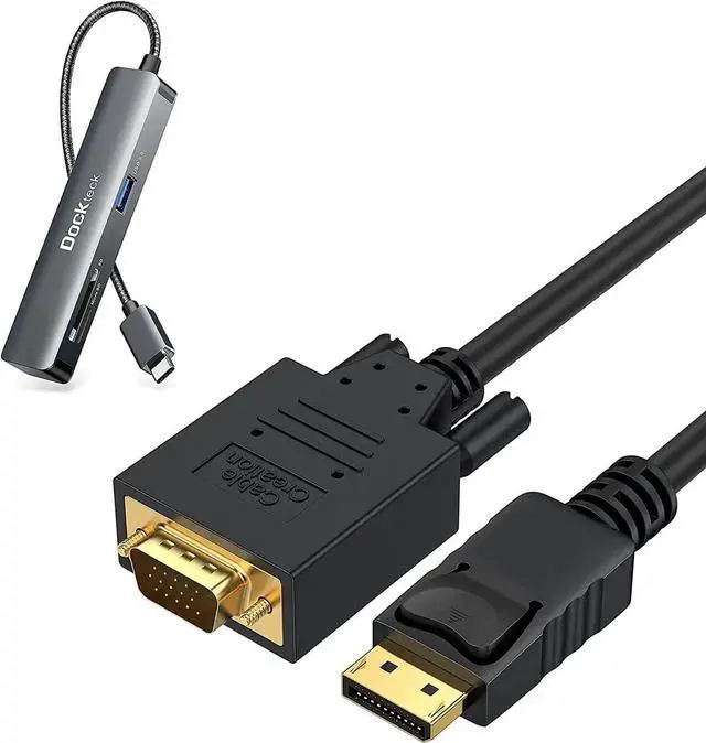 Aomoproing Displayport to VGA Cable 6FT, CableCreation DP to VGA Cable Gold Plated with USB C Hub, Dockteck USB C Dongle 5-in-1 USB Type C Multiport Adapter