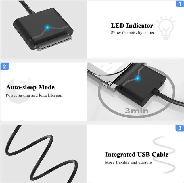 Supports data transfer up to 5 Gbps, backward compatible with USB 2.0 / 1.1. This SATA to USB 3.0 adapter supports UASP and TRIM technology, it performs 70% faster at reading and 40% faster at writing than conventional USB 3.0 when connected to a computer that also supports UASP.