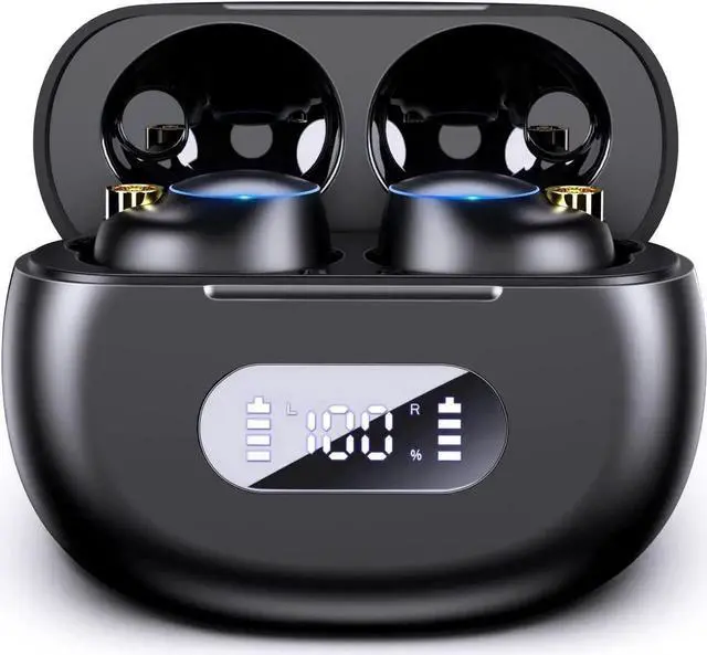 [LED Power Display & Type-C Fast Charging] The Bluetooth earbuds has an LED display, shows the battery level of the charging case, makes it easy to know the power status of the earbuds. Support fast charge function, 10 minutes of charging can play 1 hour.