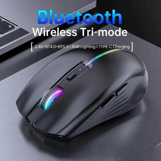 Gaming Mice, Bluetooth Wireless Mouse - (BT4.0/BT5.0+2.4G) Tri-Mode High Performance Wireless Mouse, Rechargeable, Quiet Click ,3 Adjustable DPI, Multi-Device Compatibility for Laptop, Computer