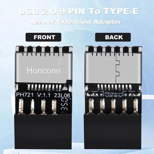 Dimension (L*W*H): 0.94 * 0.51 * 0.19 in (24*13*5mm). CompatibilityUpgrade your computer's USB capabilities with our TYPE E KEY-A FEMALE FRONT PANEL SOCKET TO 9PIN MAINBOARD HEADER EXTENSION ADAPTER which is designed to be simple effective and affordable. Plug and PlayEnjoy plug-and-play convenience with our USB 3.1 / 3.2 Type-C (20-Pin) A-Key Mainboard Header adapter perfect for upgrading your internal USB connections making it easy to install and use. Data TransferExperience lightning-fast data transfer speeds with our USB 3.1 / 3.2 Type-C (20-Pin) A-Key Mainboard Header adapter perfect for those who demand the best.