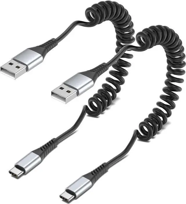 Wide Compatibility 2 Pack x Coiled USB A to USB C Cable compatible with Android Auto, Apple carplay, iPhone 15/15 Pro/15 Plus/15 Pro Max, iPad Air 4, iPad mini 6, Macbook Pro, Chromebook Pixel, Moto Z8, Moto Z Droid, Galaxy S23 S22 Ultra/S20+ Ultra/S10/S9/S8, Google Pixel 3/3XL/2/2XL, Huawei P20 P30 Pro, Mate 20 10 Pro, 8/9/Mix 2/Mix 3, and other USB-C devices.