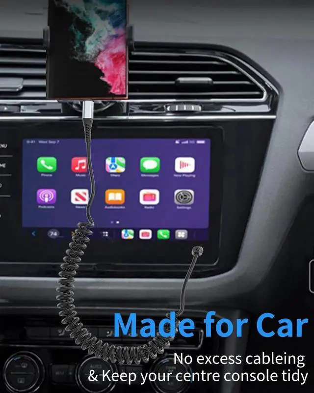 USB C Cable for CarThe retractable usb c cable is designed with a retractable spring shape, no twisting, no knotting, stretching freely, not taking up space, and easy to carry. Using it in the car can effectively save space and reduce clutter. Perfect for travelling, and the flexible length can cope with a variety of scenarios.