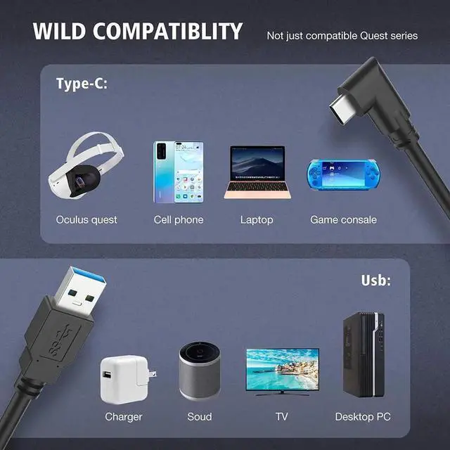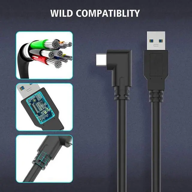 90 Degree Angle - The USB-C side utilizing a 90-degree bend that makes it more suitable for VR headset than a straight connector.