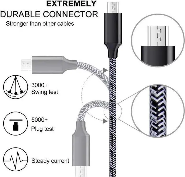 Phone chargers for android compatible for Samsung Galaxy S7, S6, S7 S6 Active Edge, S5, S4, Tab S2, Tab 4, Tab 3, Note 5 4 3; Samsung Galaxy J3, J3 Prime, J3 V, J7, J7 Star, J7 Prime, j7 max, j7 perx, J7 V, J8, J6, J5; LG Stylo 2 3 Plus, LG G2, G3, G4, Aristo 4+, Prime 2, K8, K10, K20, K30, K40, K50; Moto E (2020), E4, E4 plus, E5, E5 Plus, E5 Play, E6, E6 Plus, E6 Play, E7 Plus, G5s, G5, G5 Plus, G6 Play, Moto X/G/E; Kindle Fire 7 8 10; MP3 MP4 players and more.