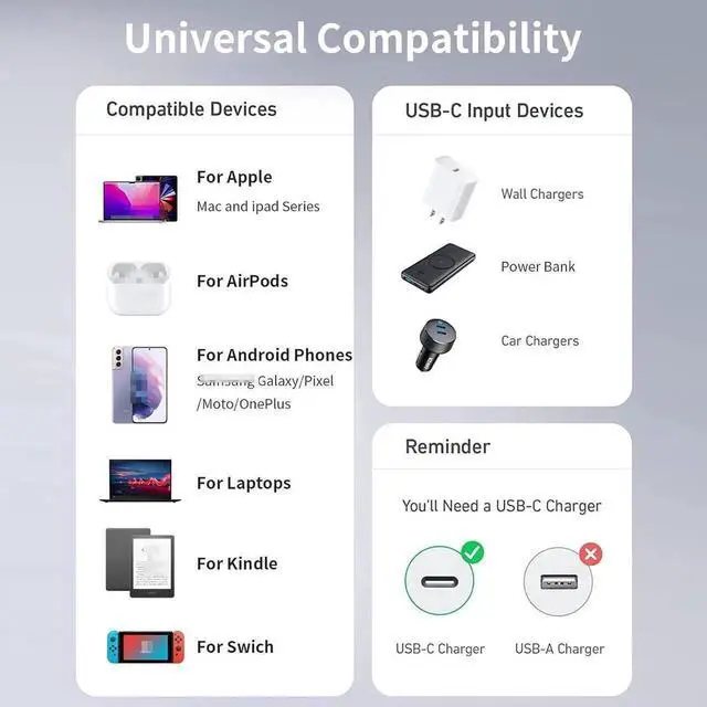 [Certified Safety] This magnetic USB C cable has electronic safety certifications which comply with appropriate standards, no need to worry about this USB C cable quality.