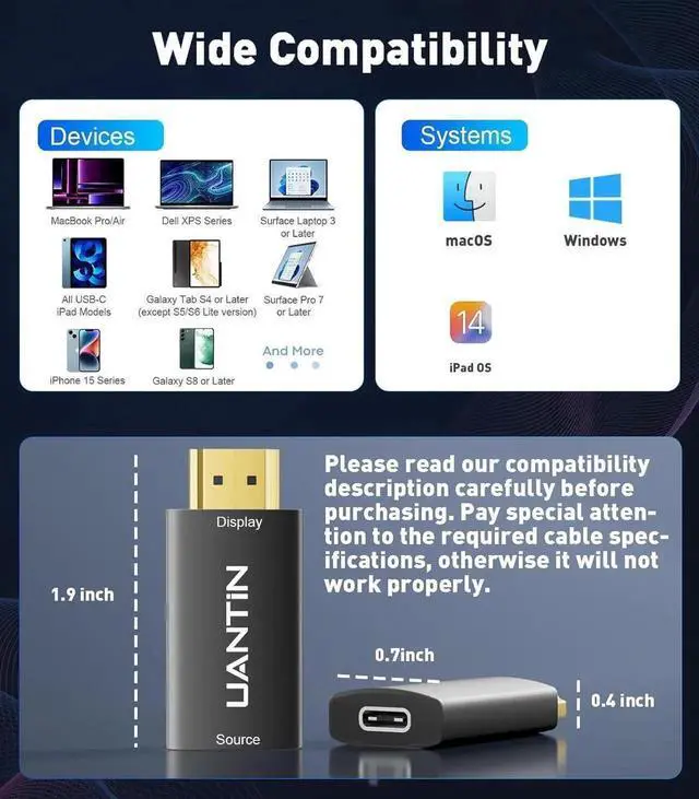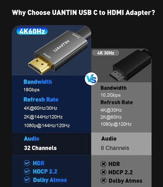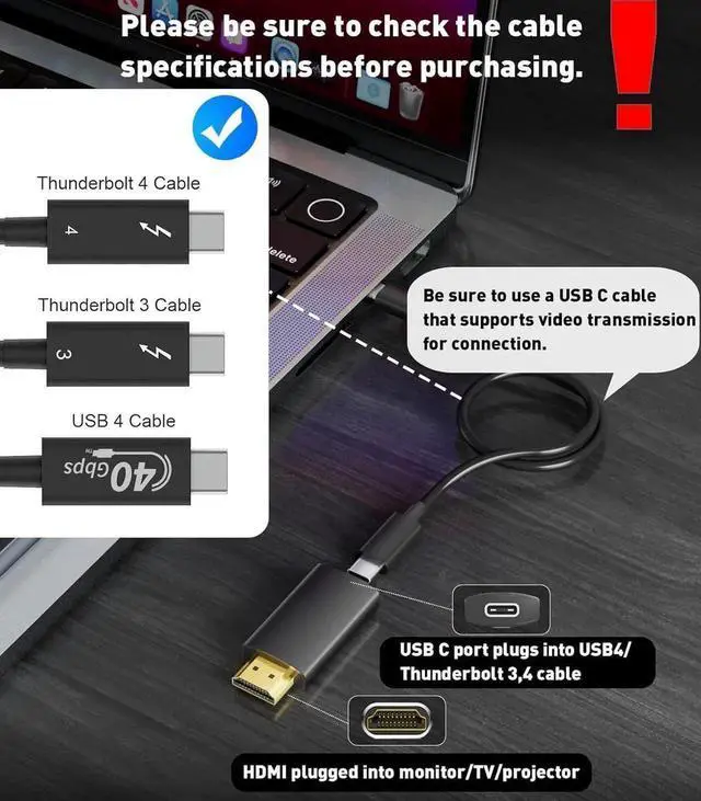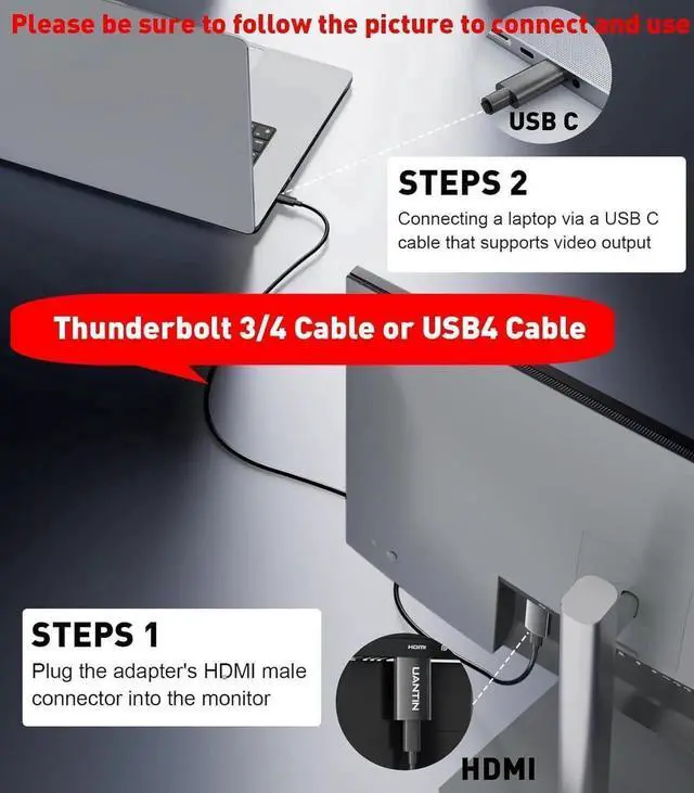 USB C Female to HDMI Male Adapter | 4K 60Hz Uni-Directional USB Type C 3.1 Source to HDMI Monitor Converter USB C Adapter for USB4/Thunderbolt 3 4 Cable - Not HDMI to USB C