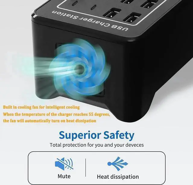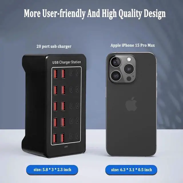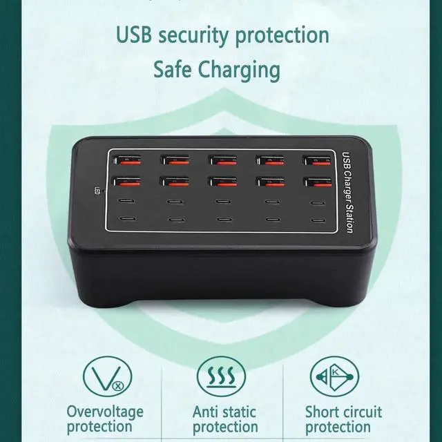 Wide Compatibility: With Smart Charging Recognition, The suitable-sized desktop USB fast charger can charge 20 devices at the same time. Saves charging time, and the USB C+USB A interface is compatible with all mobile devices.