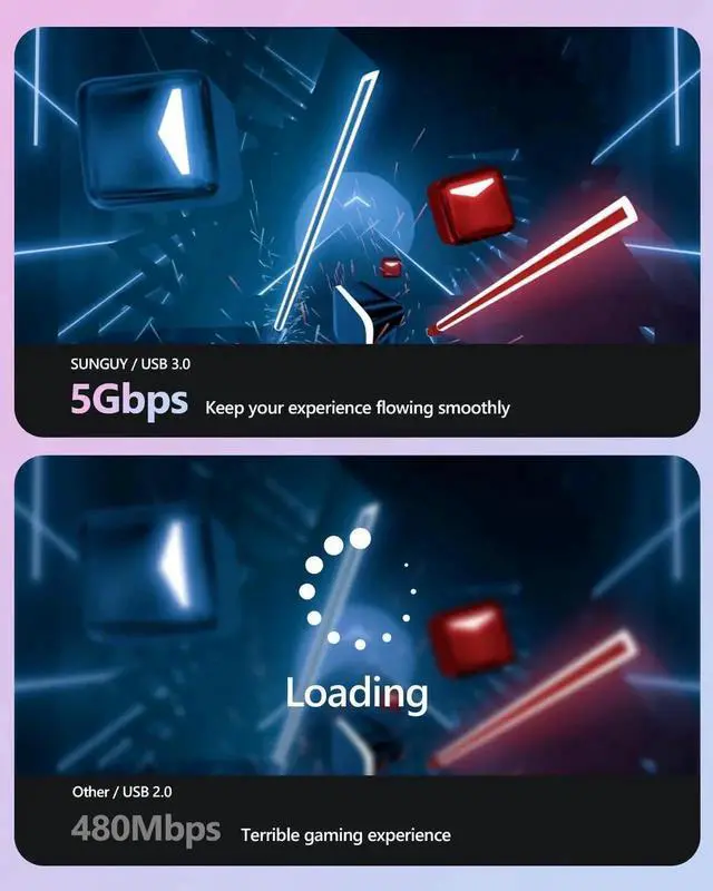 USB 3.0 High-Speed Transfer: The link cable is backward compatibles with USB 3.0 / 3.1 gen1/ 3.2 gen1. Data transfer rate up to 5Gbps, which allows it connects O-c-ulus Link Program with no lag. Stable and fast data syncing supply for a smooth gaming experience without interruption or delay.