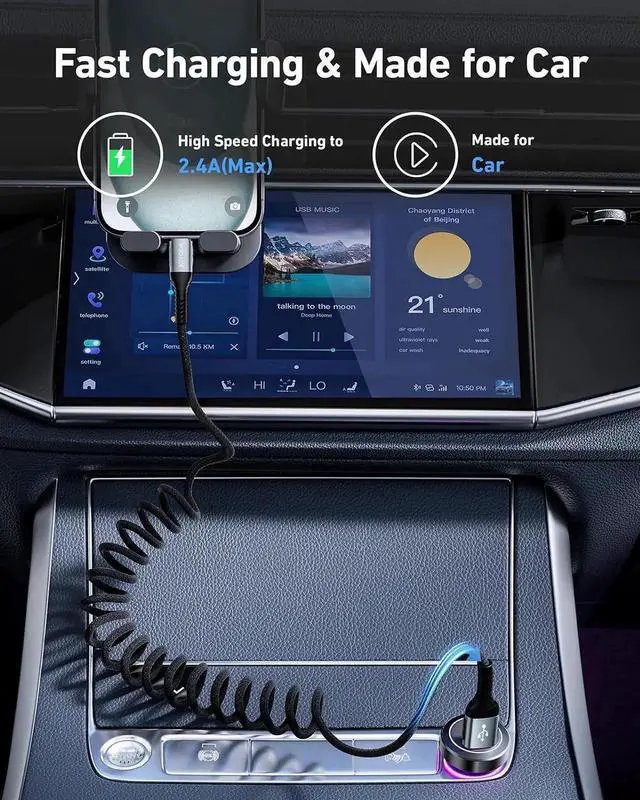 Coiled USB C Cable: 3FT Coiled USB A to Type C Charger Cord is designed with retractable spring design, no tangle, no knot, not taking up space and easy to carry and use. Short usb cable can well save the space in the car and reduce clutter. This coiled usb type-c cables made for your car.