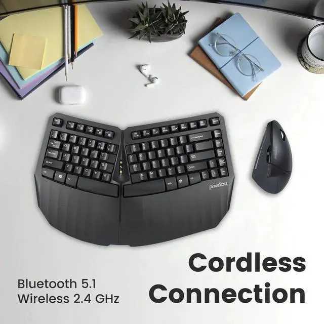Perixx PERIDUO-813 is a wireless ergonomic keyboard bundle together with the vertical mouse. The split and curved design keyboard help you type in a natural and relaxed position and the vertical mouse can let you keep an upright hand posture to avoid possible long repetitive strain injuries to the arm. The ideal combo is a good solution on your desktop with everyday work in the office or home. The wireless multi-device spec on both keyboard and mouse can create flexibility for daily use with your PC, laptop, tablet, or smartphone.
