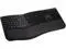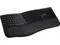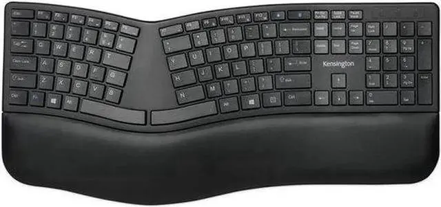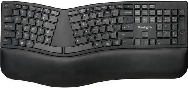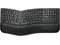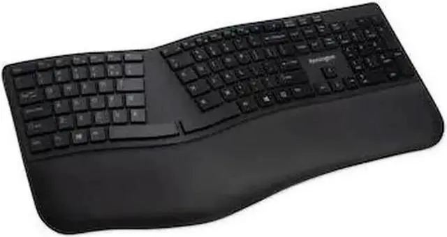 Split and sloped keyboard with adjustable reverse tilt positions hands, wrists, and forearms for comfort and neutral alignment.