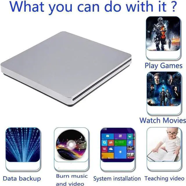 WIDE COMPATIBILITY: The external DVD drive compatible with Windows 98 / SE / ME / 2000 / XP / Vista / Windows 10/8/7 and MAC OS.It is used for the latest MacBook Pro/ASUS/ASUS/DELL and so on with USB-C interface.It also used for other Ultrabook, Netbook or Laptop/PC without built-in drive(Every product we are free provide USB Type-C female to USB3.0 adapter ).