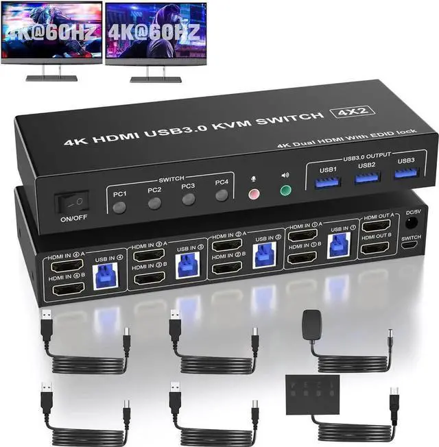 USB 3.0 HDMI KVM Switch 2 monitors 4