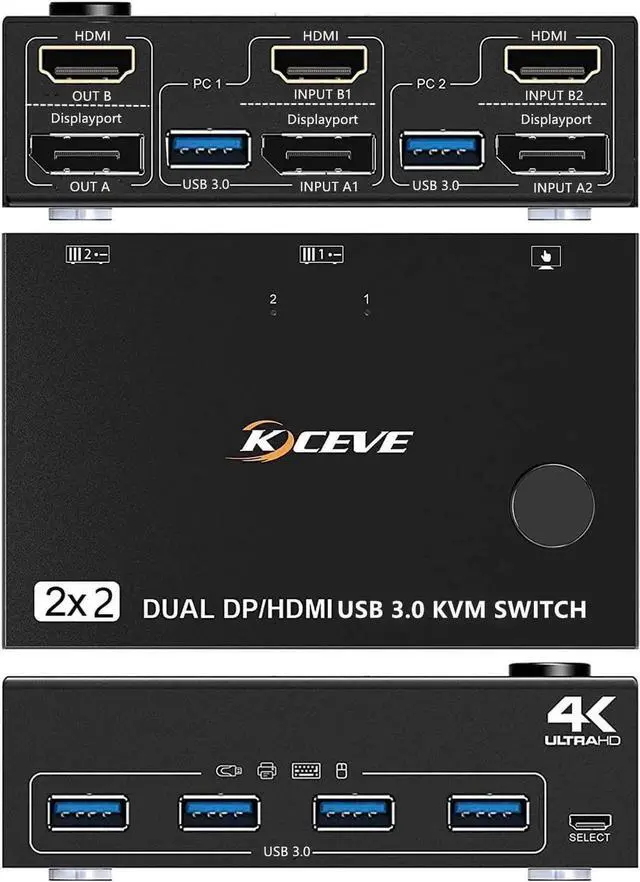 [HDMI + DP Port KVM Switch] This is a perfect KVM switch for DP and HDMI ports device to share keyboard mouse and monitor. When in copy mode the main screen can be copied to the second output screen. When in extend mode, the window from the main screen can be dragged to the second output screen.