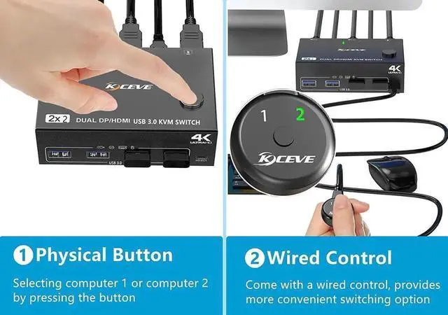 [Support 2 Switching Mode] Support physical button and wired control. Only when your computer supports dual display or multi display, you can use this DP HDMI KVM switch to achieve two computers to share two monitors, please choose extended mode or copy mode in your computer.