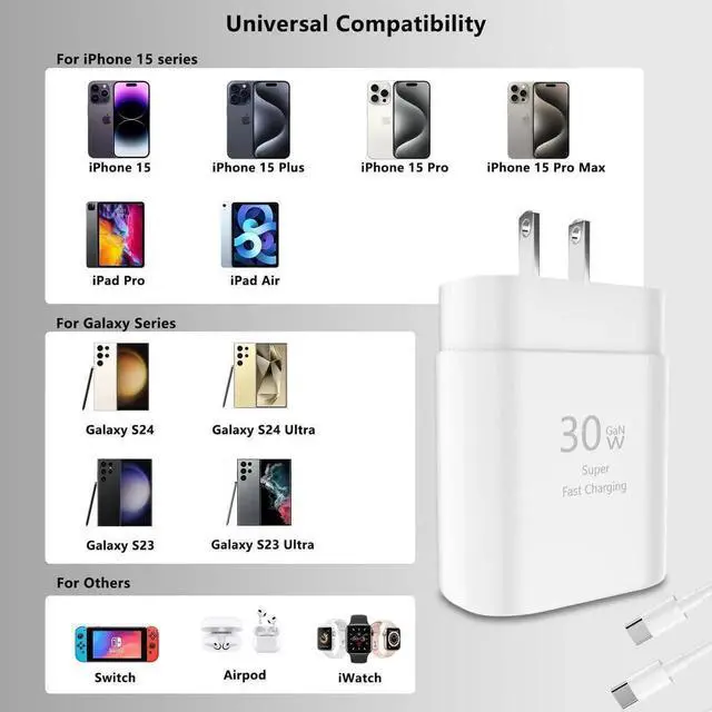 Superior Safety The 30W USB C iPhone 15 pro max charger fast charging has multi protection safety system to protect your devices from over current, over voltage, short circuit and overheating, etc. This iPhone 15 pro max charger fast charging match the current required by the device automatically, charge your device fast, safely and steadily.
