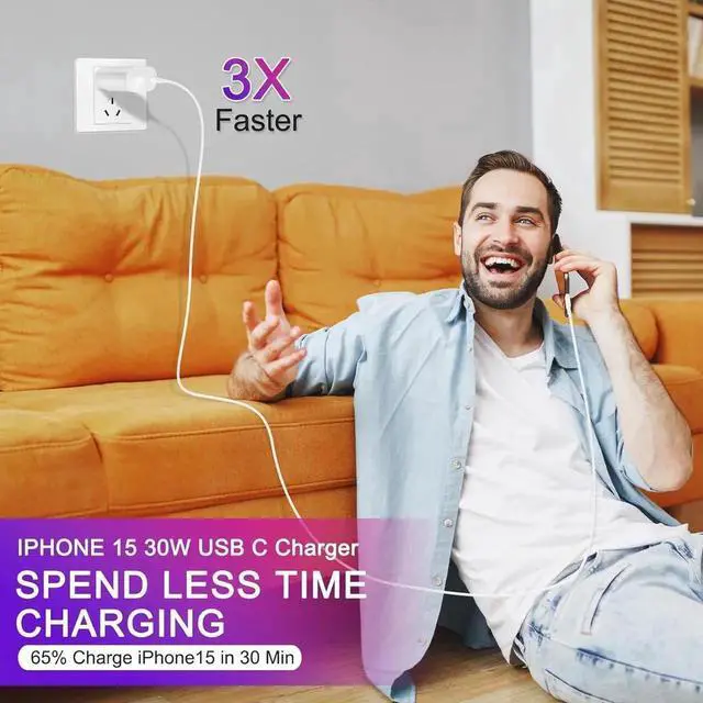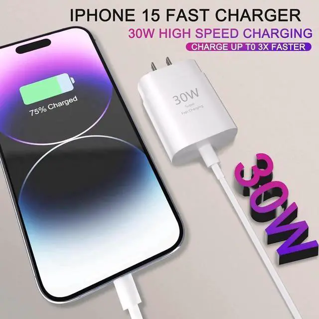 30W USB C iPhone 15 Pro Max Charger The PD 30W USB C iPhone 15 Pro Max Fast Charger with 10FT extra long USB C to USB C fast charger cable provide Max 30W output power, charge your iPhone 15 Pro Max up to 65% in just 30mins, 15% faster than the original 20W USB charge.