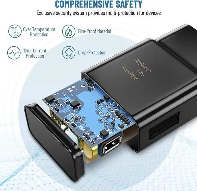 Adaptive fast charge: Supports fast charging for Samsung Phones, QC 3.0/2.0 and Adaptive Fast Charging (AFC) compatible devices. Enables you to charge your phones up to 50% battery level in 30 minutes, 75% faster than standard Samsung fast charger. Save a lot of time with Adaptive Fast Charging Wall Charger.