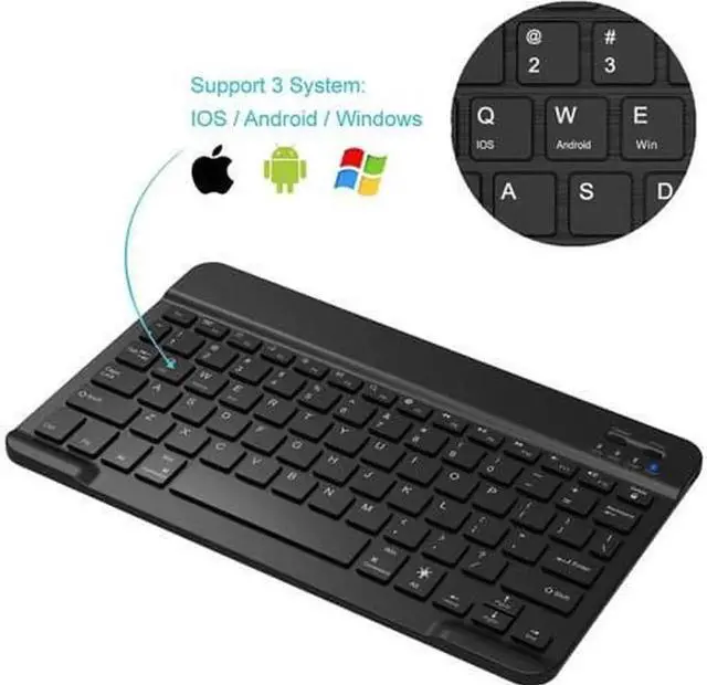 HB030B Universal Slim Portable Wireless Bluetooth 3.0 7-Colors Backlit Keyboard with Built in Rechargeable Battery, Black