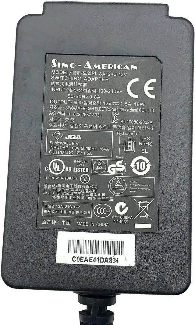 Genuine Sonic-WALL Tz105 TZ 105 Apl22-09b Sino-American AC Adapter w/Cord